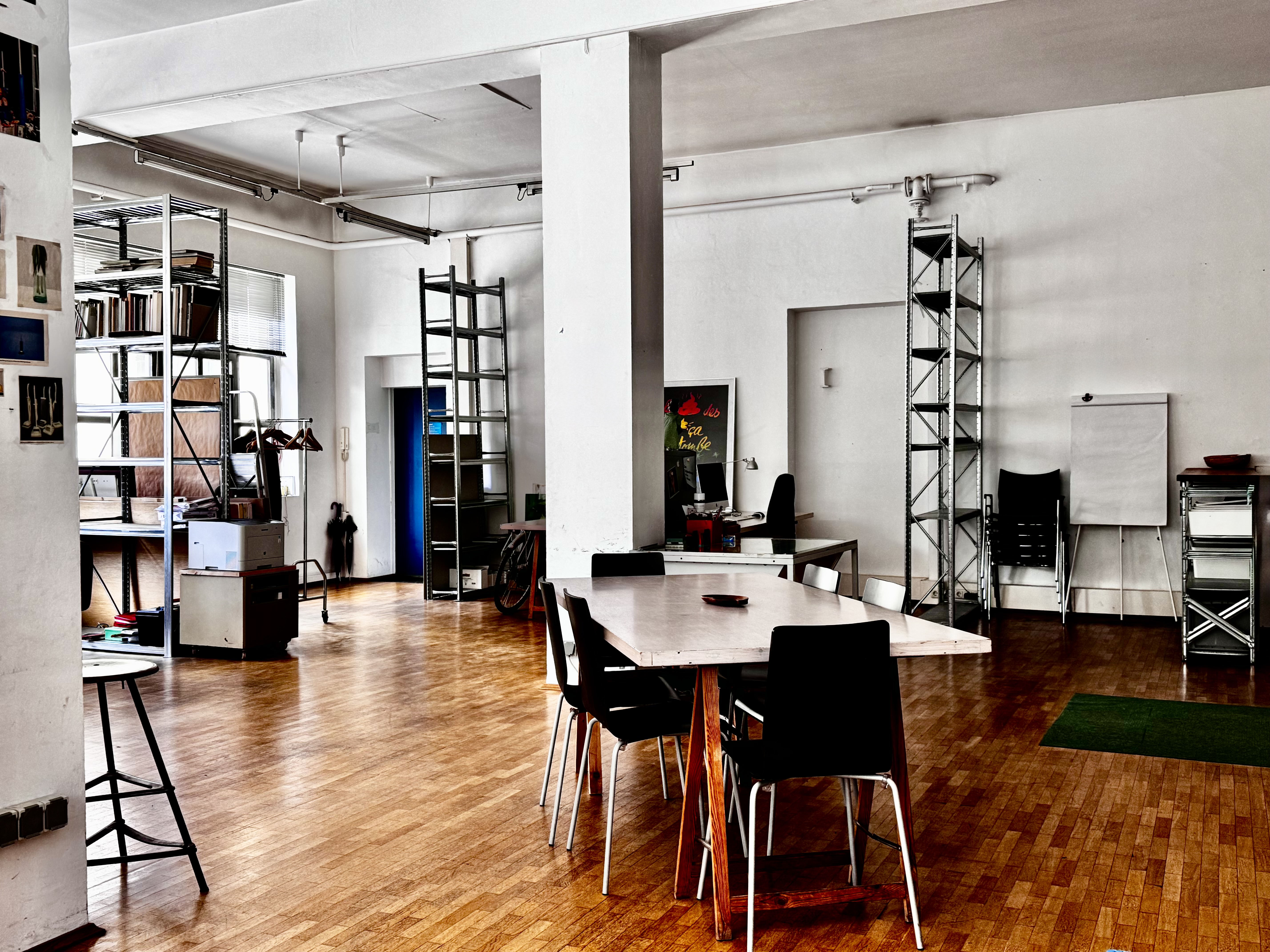 Wir teilen uns (nur wer mag) die Kosten für einen Drucker, Kaffee und Verbrauchsmaterial. Zur Verfügung steht auch ein Leucht-Schneidetisch und ein separater kleiner Raum für Besprechungen und Rückzug.